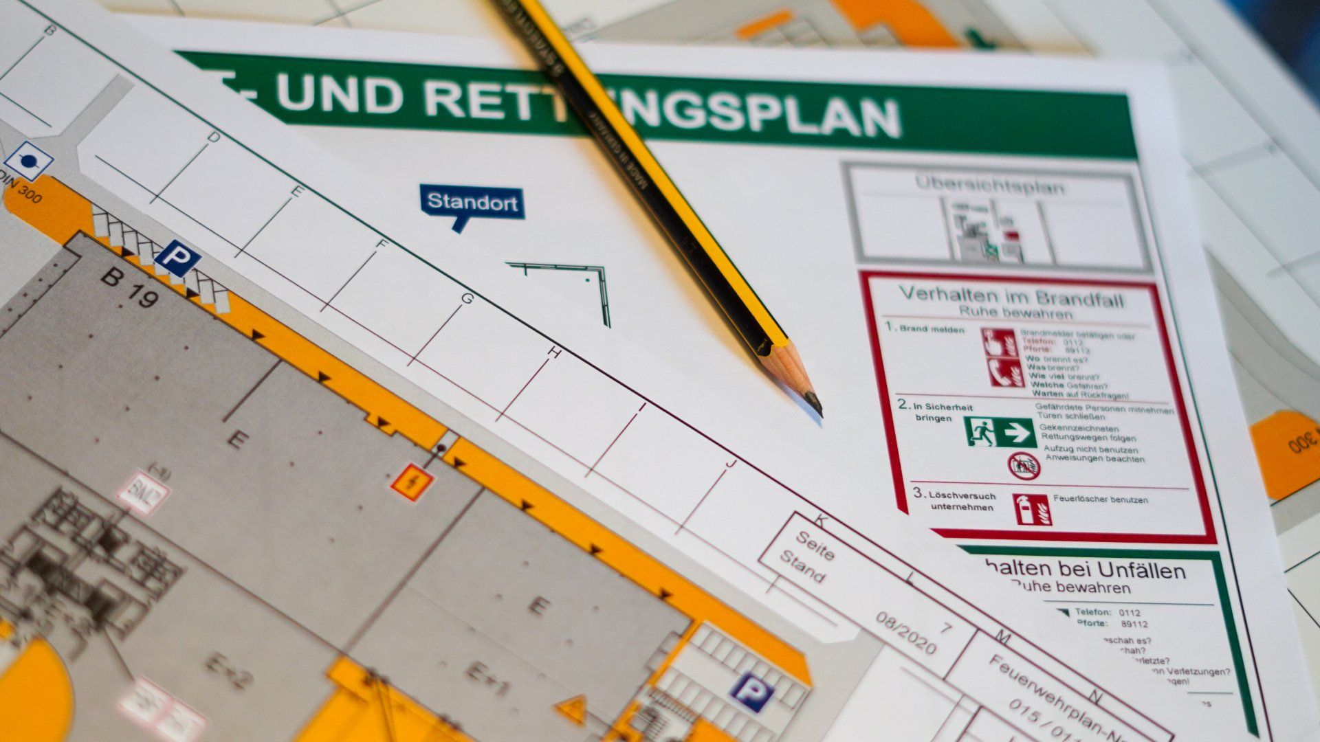 Flucht- und Rettungspläne gehören zu den Maßnahmen des organisatorischen Brandschutzes und der betrieblichen Gefahrenabwehr. Zweck ist es, durch eine grafische Grundrissdarstellung, allen im Gebäude anwesenden Personen eine Orientierung im Notfall zu geben. Zudem werden hier die nächstgelegenen Brandschutz- und Erste-Hilfe-Einrichtungen grafisch dargestellt. Die Erstellung der Flucht- und Rettungspläne erfolgt nach DIN ISO 23601. Des Weiteren können die betroffenen Personen im Gefahrenfall anhand der Pläne Alternativen zu eventuell versperrten Fluchtwegen zu erkennen. Was sind Flucht- und Rettungspläne? In den Planwerken werden grafisch folgende Punkte dargestellt: - der Verlauf von Flucht- und Rettungswegen, - die Lage von Erste-Hilfe-Einrichtungen, - die Lage von brandschutztechnischen Einrichtungen - das Verhalten im Brandfall und bei Unfällen. Wann werden Flucht- und Rettungspläne benötigt? Die Notwendigkeit zur Erstellung und Anbringung von Flucht- und Rettungsplänen ergibt sich aus einer Vielzahl von Gesetzen und Verordnungen, wie beispielsweise dem Arbeitsschutzgesetz, der Arbeitsstättenverordnung oder auch den Arbeitsschutzrichtlinien. Die Erstellung der Flucht- und Rettungspläne erfolgt nach der nach DIN ISO 23601. Die Sicherheits- und Gesundheitsschutz-kennzeichnung erfolgt nach der ASR A1.3.